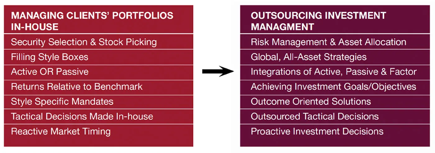 Outsourcing investment management offers financial advisors access to sophisticated active investment strategies, resources for risk mitigation, and more time for clients and business building.
